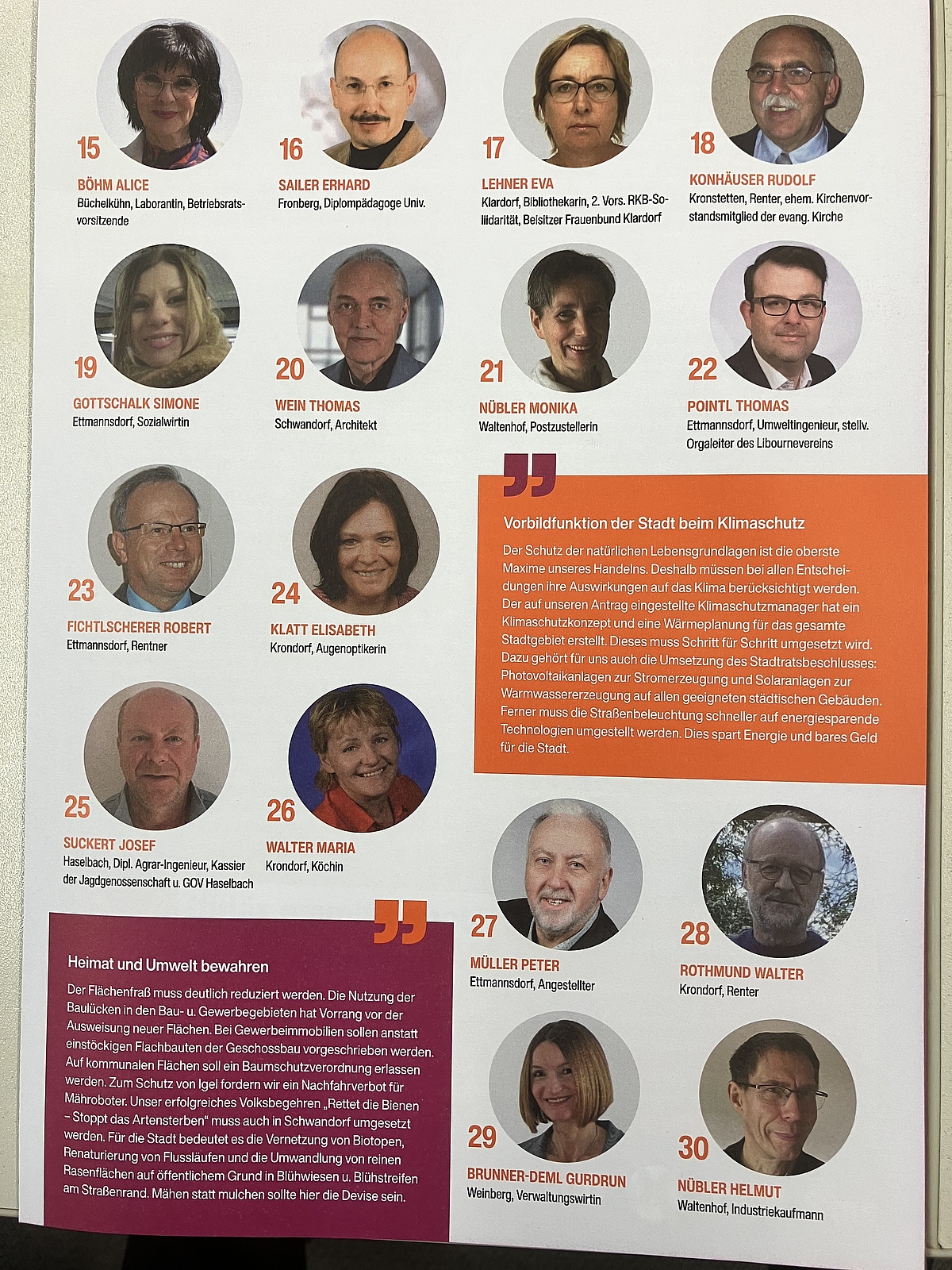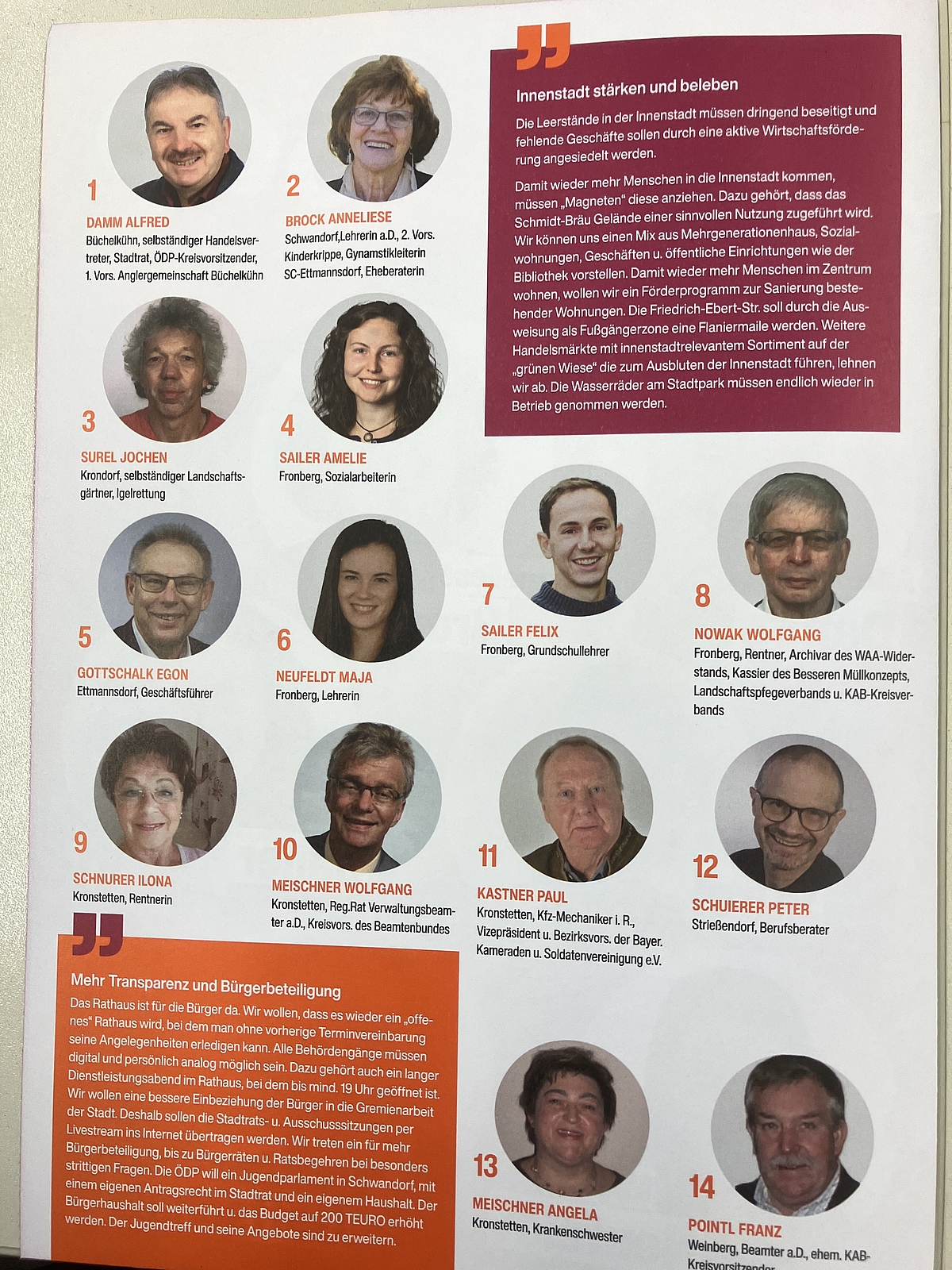 Stadtratkandidatinnen u. Kanidaten für die Stadt Schwandorf